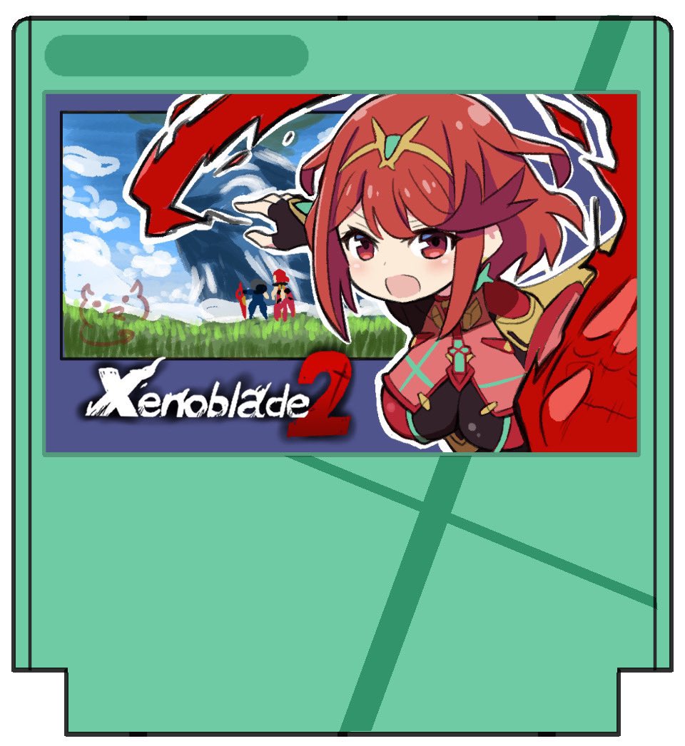 #ファミコンの日 過ぎたんでゼノブレイド2のロムカセットを妄想してみたも。きっと特殊なチップ入っててめちゃくちゃ縦幅が長いんだも #ゼノブレイド2