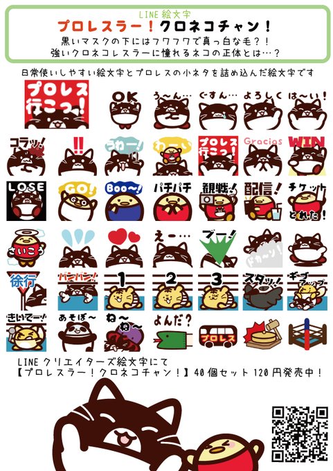 【LINE絵文字】store.line.me/emojishop/prod… プロレスのLINE絵文字描きました! オリジナルのプロレスのキャラを描きたくて、ずっと温めてたものを形にしました🐱 細かい小ネタの内容はまた後日紹介できたらなと思います! #LINE絵文字 #プロレス