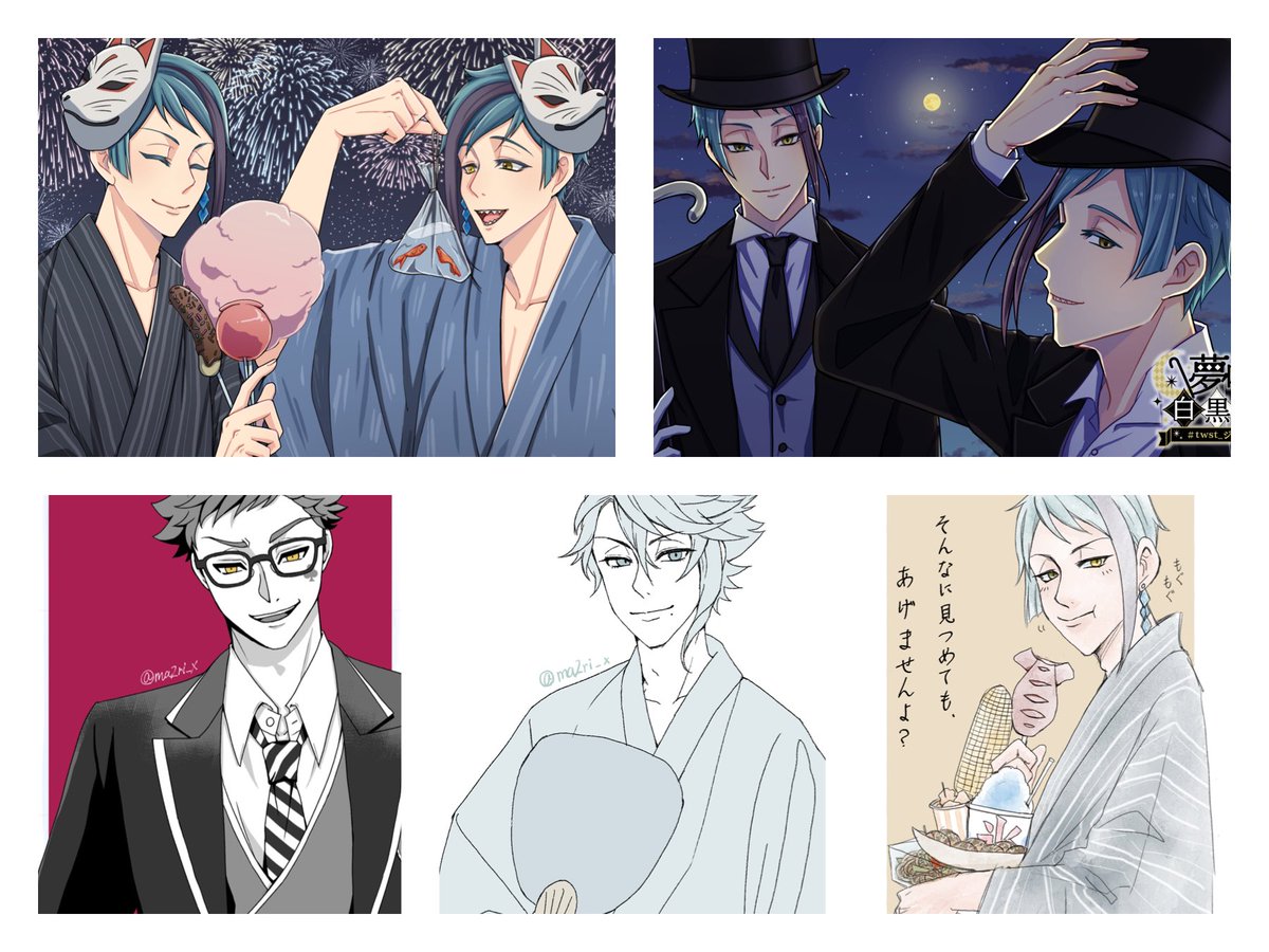 130 775 スーツな🦈と🐬 七月ちゃんの素敵な企画に参加させていただきました!タグから素敵な作品がいっぱい見られますのでぜひ✨ #twst_スーツ企画 21/06/12 00:38