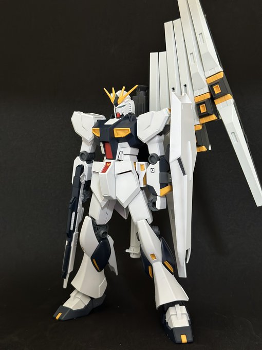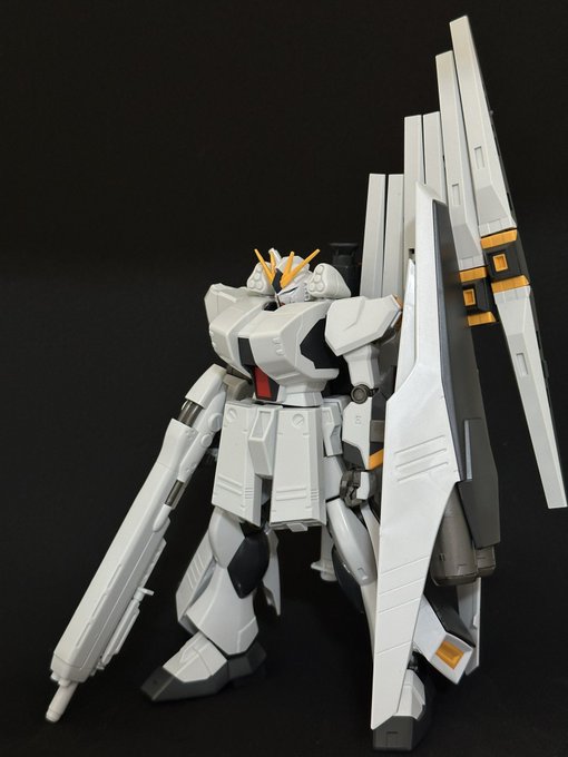 おはようございます😊HG νガンダムHWS装備です。EGのνガンダムにHWSを移植したかったのですが、断念😅逆にEGから頭部のみ拝借しました😁古めのキットなので、全体的にあっさりしてますね。 #ガンプラ #ガンプラ好きとつながりたい #ガンプラの画像貼るとRTされると聞いて