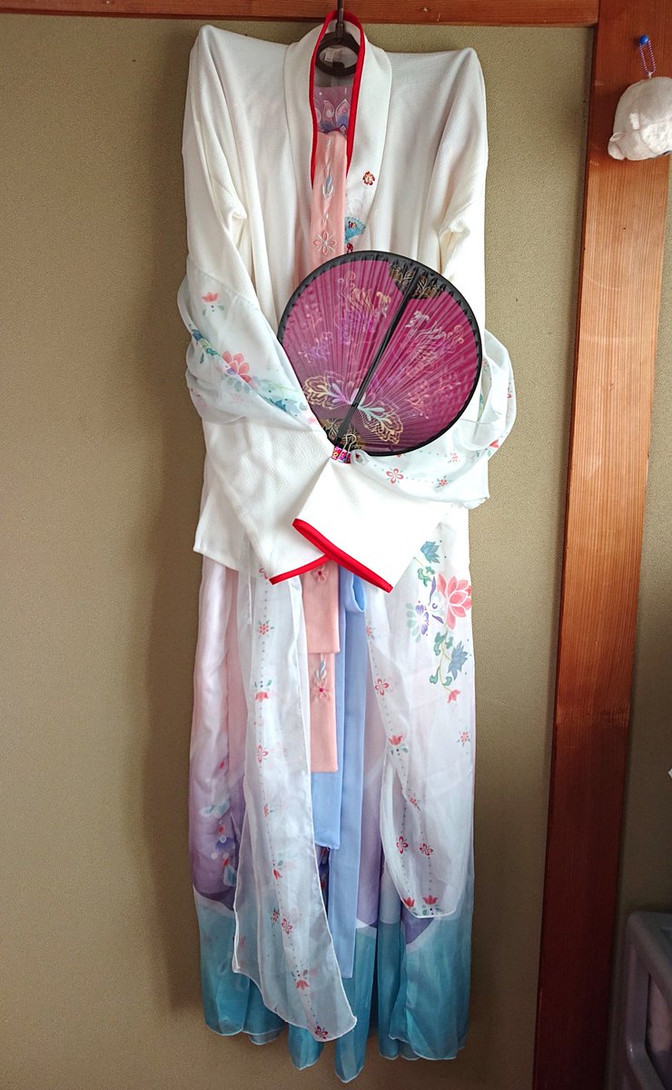 0 1 手持ちの漢服で奈良風にしてみました。 背子(からぎぬ)とよばれる袖無しの丈の短い上着は無いし、帯には文様も入っていませんが💦 #漢服 #コスプレ 20/09/13 16:06