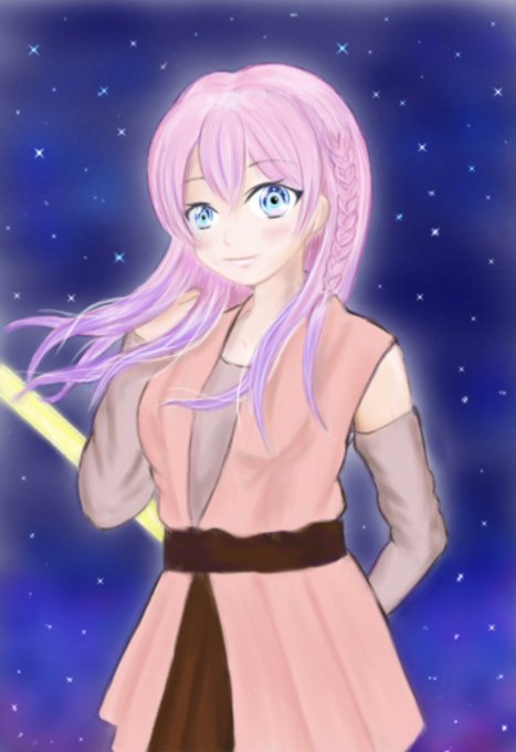 今年中に描き直したかったイラストがなんとか間に合ったので見ていただけたら嬉しいです🙏 光る剣を後ろ手で持っているイラストを星空を背景にして描きました✨ わかりにくいかもしれないので説明させていただきました。