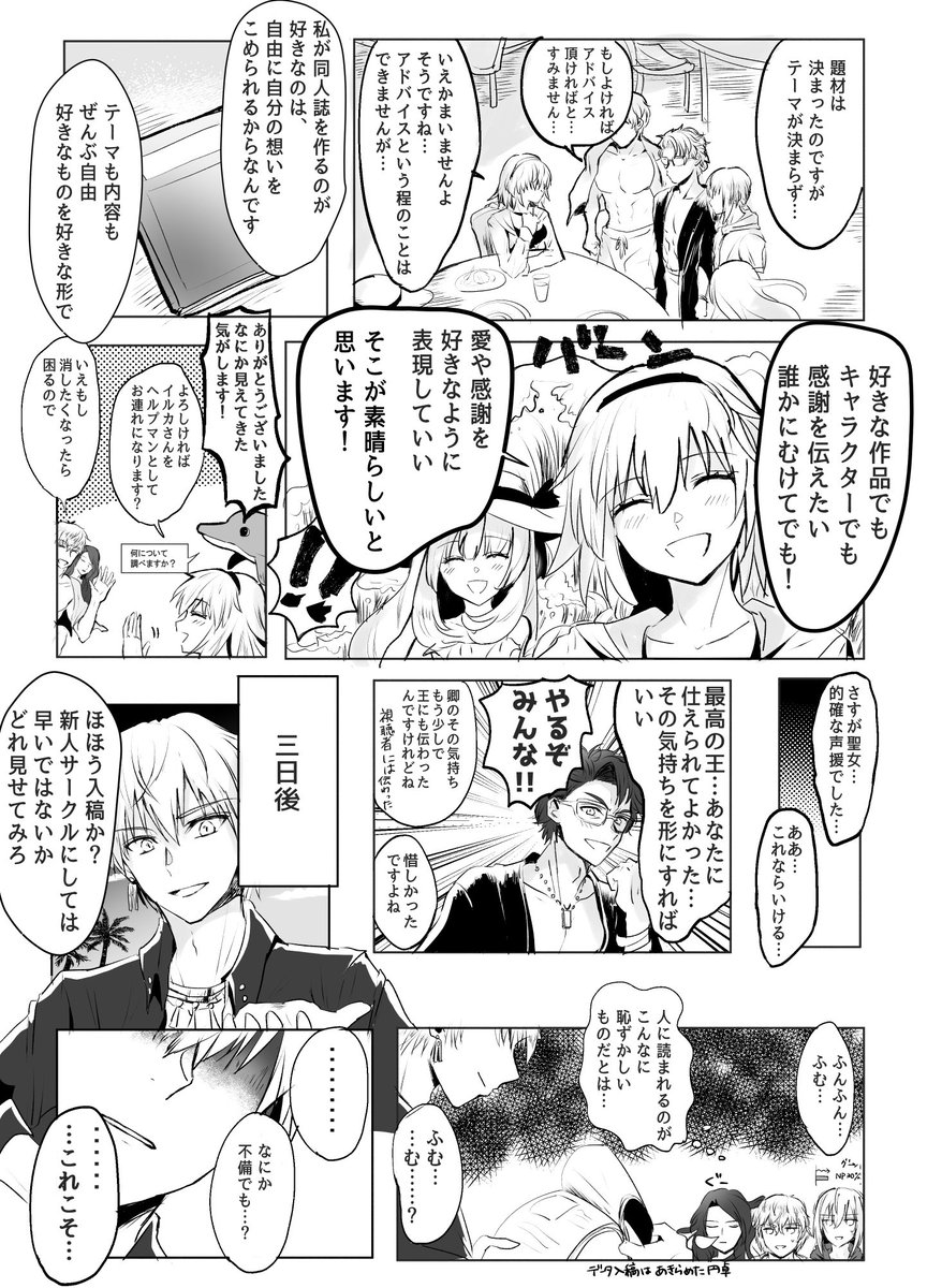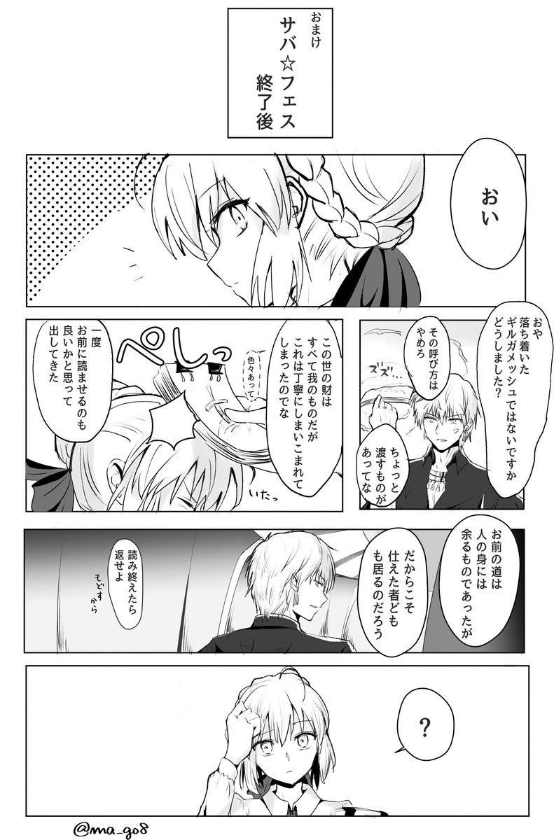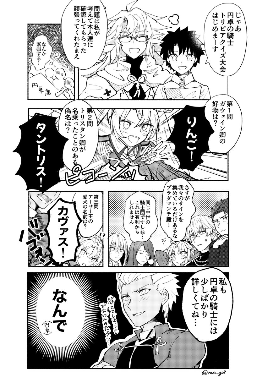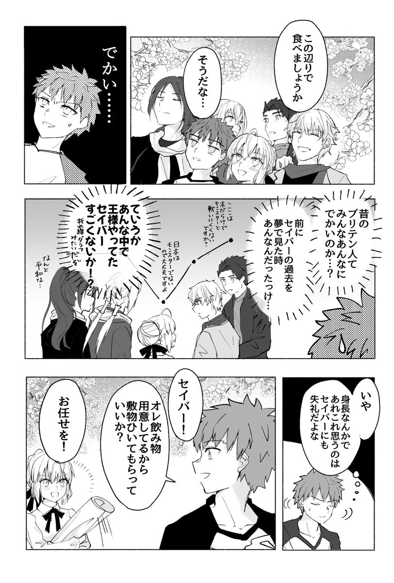 士郎がセイバーと円卓と一緒にお花見に行く漫画②(全4枚) ちょっとあまりにも間が空いてしまったので、2枚目だけ先にあげときます すみません!次は最後まで描き上がってからまとめて投稿します あとガウェインとランスロットは後半に出番多めなので今回ほぼいません twitter.com/ma_go8/status/…