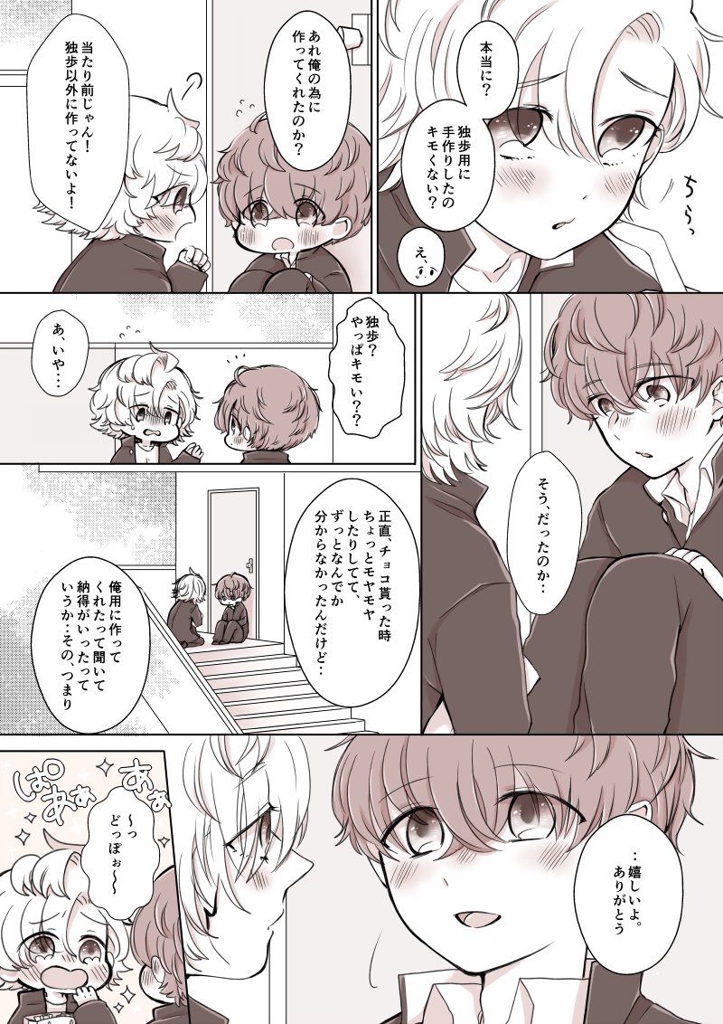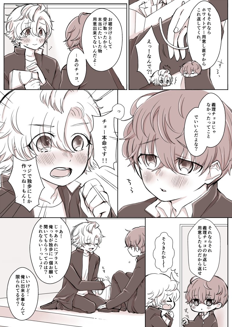 ※ひふど すごく過ぎてしまってるんですけどホワイトデーひふど漫画を描きました。 前描いたバレンタイン漫画(twitter.com/ma_m0itie/stat…)の続きです。 1/2(全7枚)リプ欄に続きます