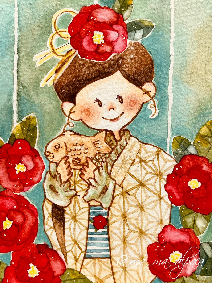海外にお礼で送る絵なので、和装にしてみました⛩鯛焼きレディ #アナログイラスト #イラスト #オリジナルイラスト #illustration #絵柄が好みって人にフォローされたい #今月描いた絵を晒そう
