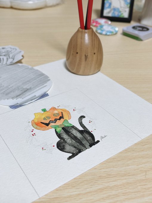 秋を描きました〜🍂🐈⬛ 宇都宮の雑貨屋リゼロさんに置いて頂いています! #アナログイラスト #オリジナルイラスト #水彩画 #illustration #illust #猫 #宇都宮市 #栃木県