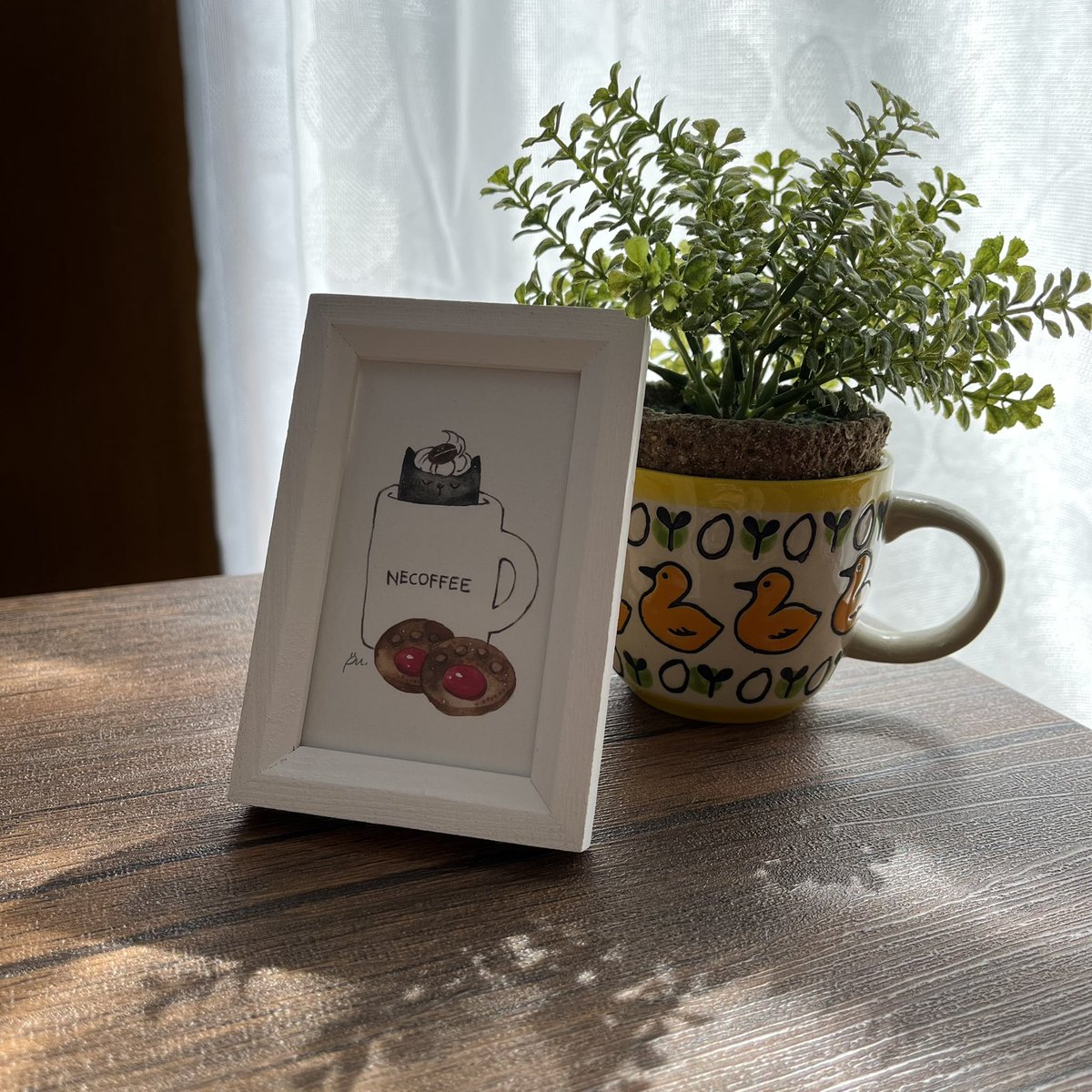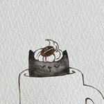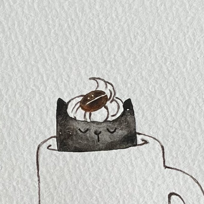 寒い日が続きましたので NECOFFEE☕️🐈⬛🌿 肉球のクッキーもいっしょにいかがでしょう〜 缶バッジとポストカードも発注かけたのです! #オリジナルイラスト #猫 #黒猫 #ゆるいイラスト #透明水彩 #illustration #illust