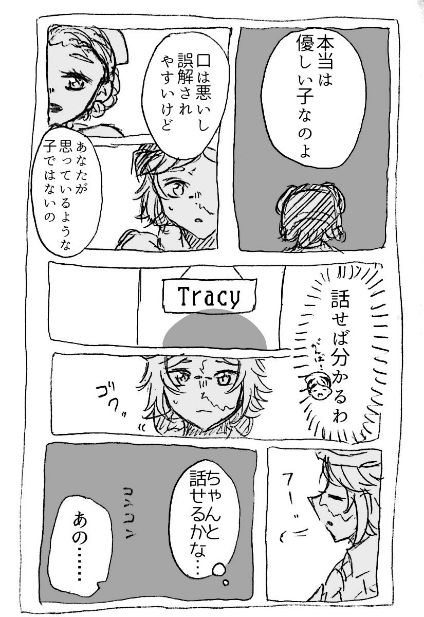 続きのノトトレ(トレイシー不在) ノートンくんはあの子が気になってとりあえず名前が分かったところです。そんな時に出会ったお節介な医師さんとのやりとり。 ノートンくんは怒ってるより嫌われたかなってモヤモヤしてます。 #第五人格イラスト #identityVイラスト