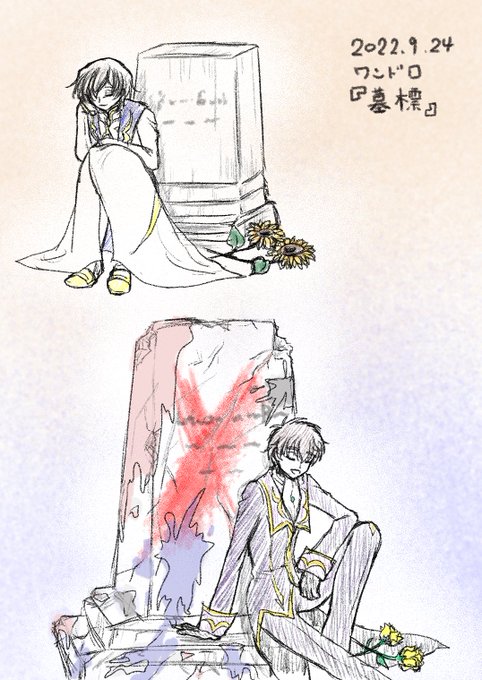18 102 #スザルル版深夜の絵描き文字書き60分一本勝負 開催ありがとうございます!久々に参加させていただきました☺️ お題『墓標』 22/09/24 23:10