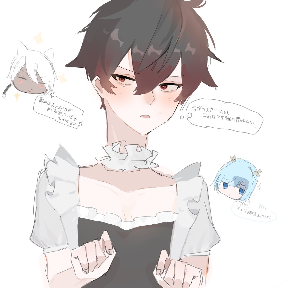 メイド服着て泣いてるカゲチヨくんが見たかったんだ、、 #混血のカレコレ #カゲチヨ #イラスト