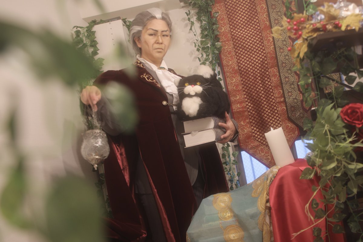 4 44 コスプレ/cosplay🌹twst Mozus Trein📖🐈⬛🪄 モーゼズ・トレイン先生 衣装 @annariel87 家コス。手袋忘れた😭💦 21/11/26 11:28