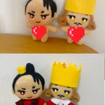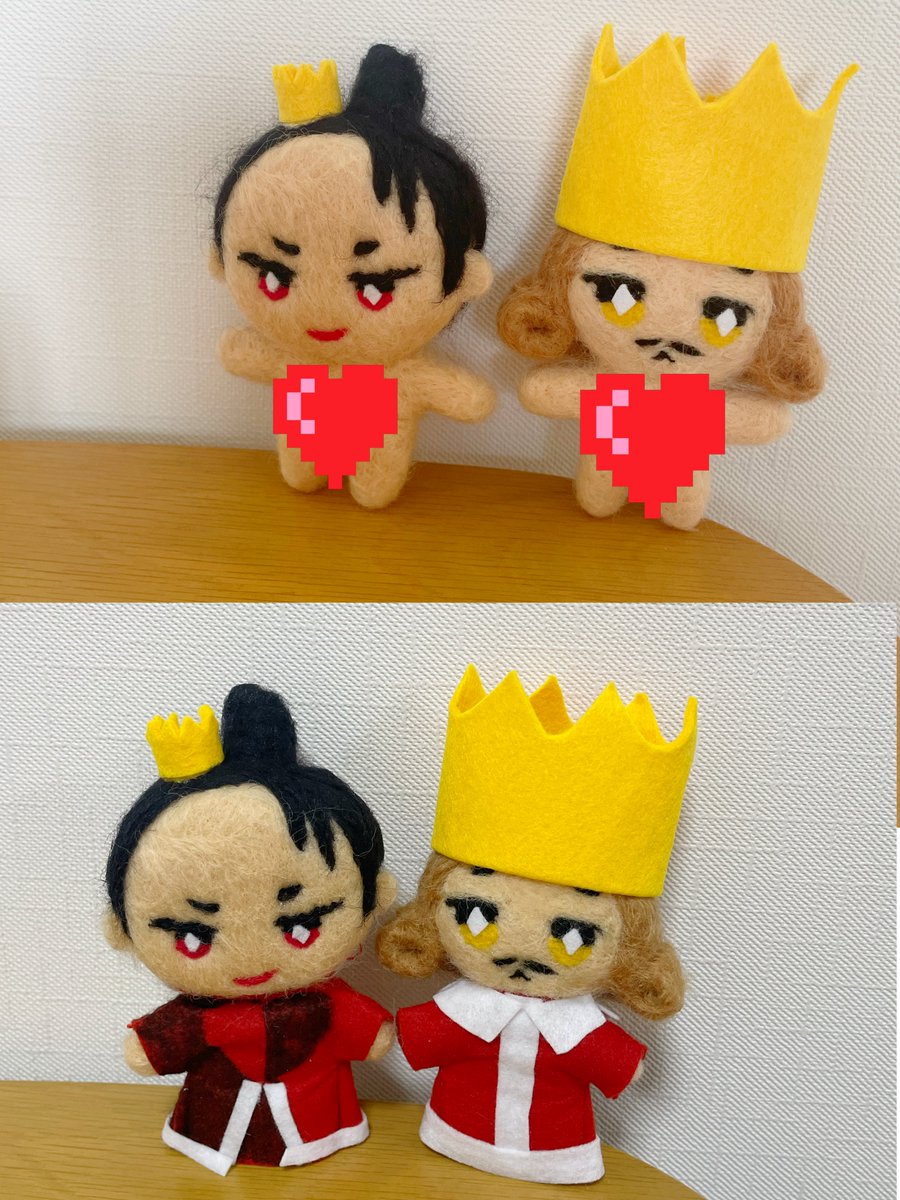 ハートのお茶会に誘われてるので🥰✨10cmぬいと同じ大きさで女王と王様を作ったよぉ❤️❤️ #羊毛フェルト