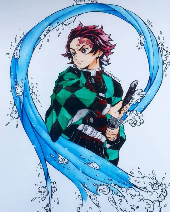 Here he is! Tanjirou Kamado for u all! Sorry for inactivity, I'm so busy~ If u like it follow me! -DON'T REPOST WITHOUT MY PERMISSION, ASK ME- . . #demonslayer #kimetsunoyaiba #kimetsunoyaibafanart #animemanga #anime #fanart #animefanart #wathercolor #draw