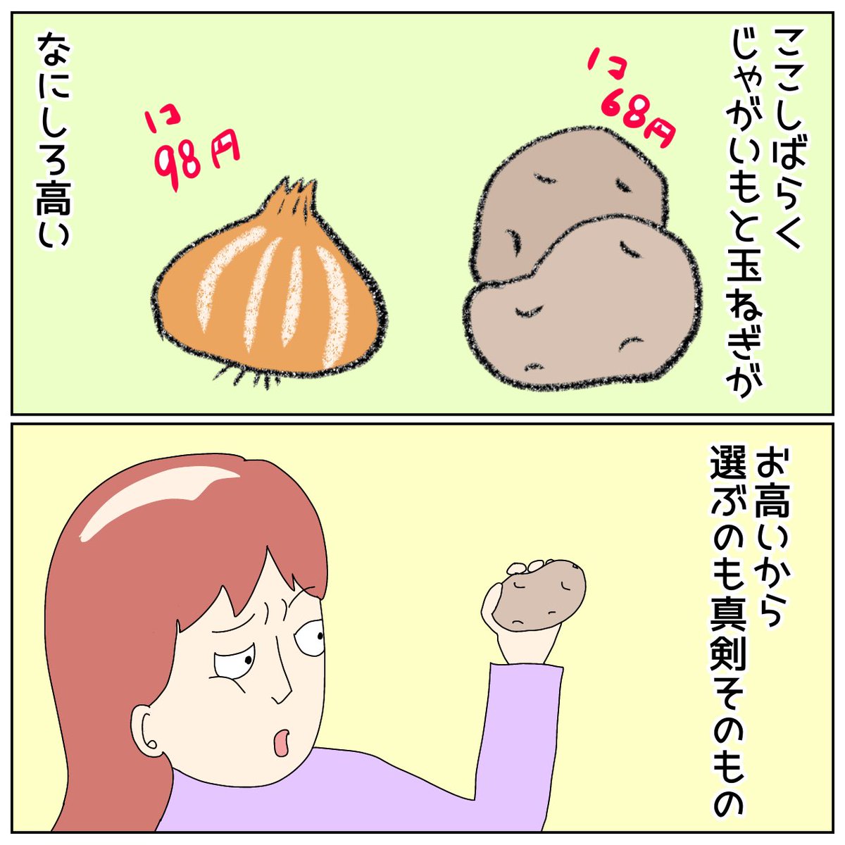 1 1 新じゃが出て来てじゃがいもは少し落ち着きましたね。 #漫画が読めるハッシュタグ #野菜高い 22/07/25 11:02