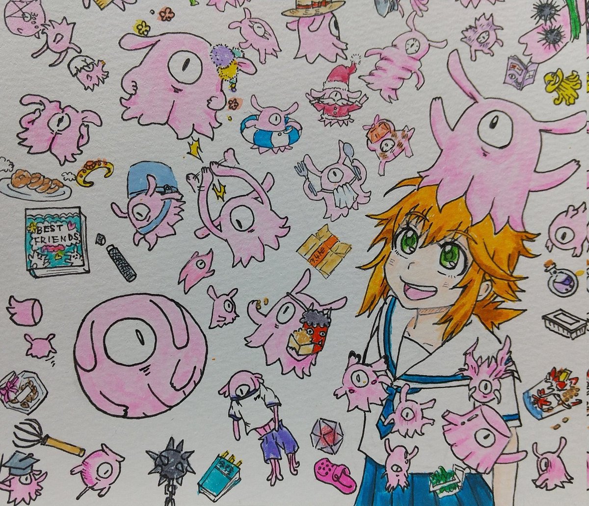 やっと完成! 全エピソードを詰め込めたはず!? 納豆があるから大丈夫! 描きつつ何度も読んじゃって遅くなりました。上木先生!とっても素敵な世界をありがとうございます! マグちゃんと流々ちゃんの関係が本当に大好きです #破壊神マグちゃん #破壊神マグちゃん混沌芸術祭