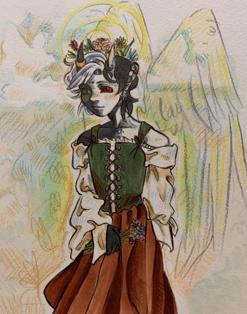 ☁️🕊 angel 🕊☁️ —— p-pretty dress 😳👉👈 untag replies - rts are little clouds ✨ #ranboo #ranboofanart