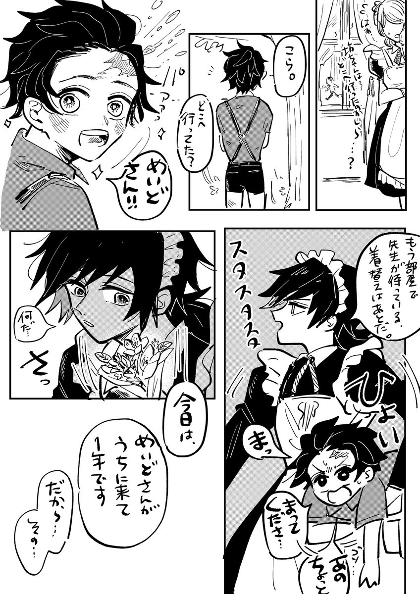 メイドの日!!!!(遅刻&雑) 当然のように女装メイドしてるぎゆさんとお坊ちゃんしょたんじろのしょたおに炭義。
