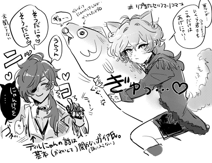 190 1384 いくら君(可愛いおとうと)でもこれだけはあげにゃい😾🐾🐟🔥 りぷきたセリフでどうしてもディルにゃんが言いたいって…(ガイディル) #kaeluc 21/10/17 11:41