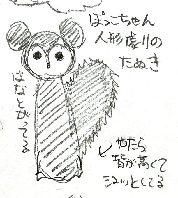 おはようです ぽっこちゃんの展覧会で流れていた人形劇のたぬきを思い出しながら描きました 2枚めはぽっこちゃんの漫画に出てきたたぬき 良く描かれる3枚めの、目の周りが黒いたぬきはどこからはじまったのでしょう? あらいぐまラスカルはかなりデザインがちがいます twitter.com/macamica/statu…