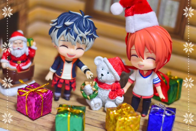 12/24【くりすますいぶ】 陸「クリスマス装飾張り切りました! 皆でプレゼント交換楽しみですね♪」 百「クマ〜! 誰に何が当たるかにゃ?」 #深夜のねんどろ撮影60分一本勝負
