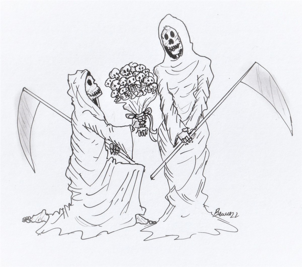 Inktober 2022 Dia 6 - "Buquê" #inktober2022 #inktober2022day6 #cartum (Hoje foi punk. Não consegui pensar numa tira com o tema, então vai um cartum - e ainda atrasado...)