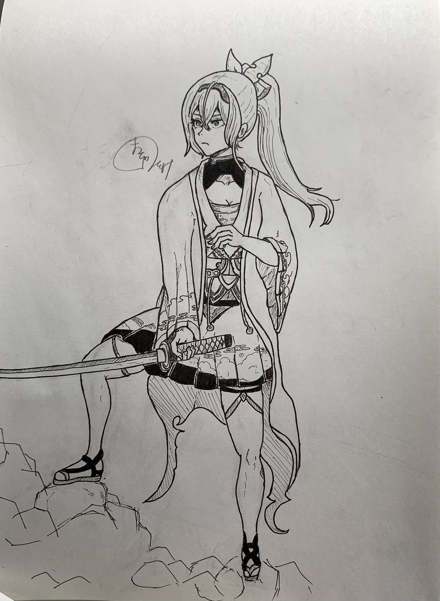 1 1 #いろはにも絵を #アナログ絵 髪留め外した風真いろは殿かいてみた🥷 23/03/13 16:25
