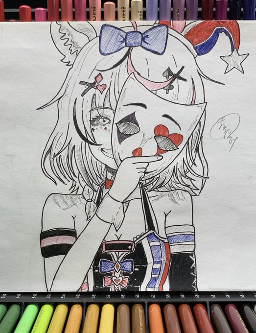#いろはにも絵を #アナログ絵 髪留め外した風真いろは殿かいてみた🥷