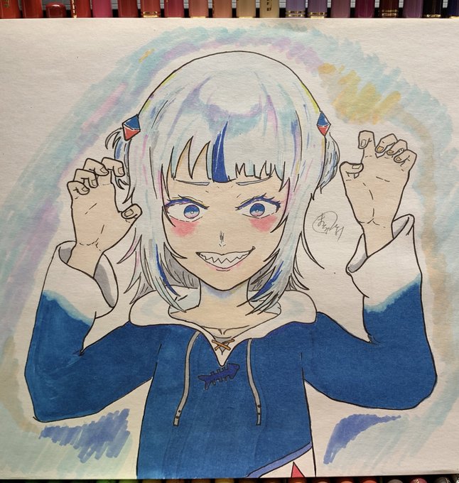 #gawrt #アナログ絵 がうるぐらのビジュめっちゃスコとかそんな事思いながら描きました🦈