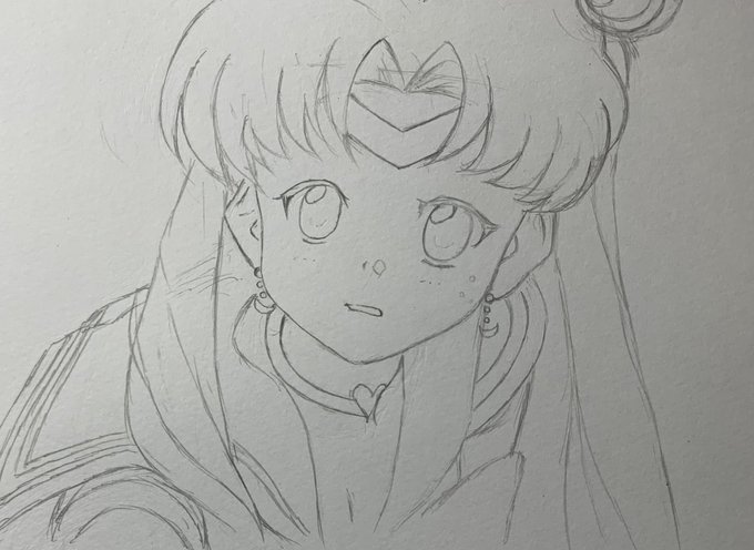 0 4 作画行程約1時間(下書き→ラフ画→線画途中) #セーラームーンチャレンジ 20/05/26 02:46