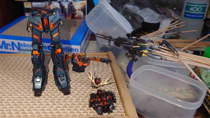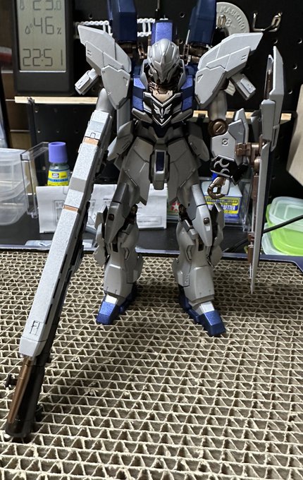 ディランザ組みながらエアリアルに勝てるプラン考え中😓 3月の地震でバランバランになったRGシナンジュでミキシングしたらつえーんじゃね? #ガンプラの画像貼るとRTされると聞いて #ガンプラ好きと繋がりたい