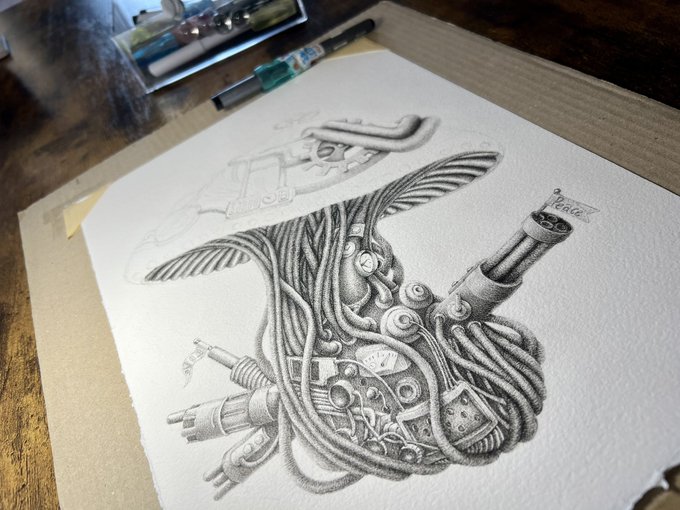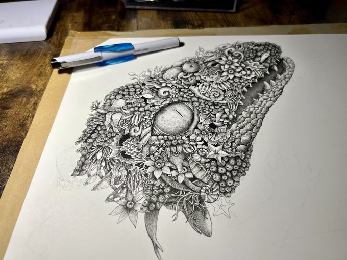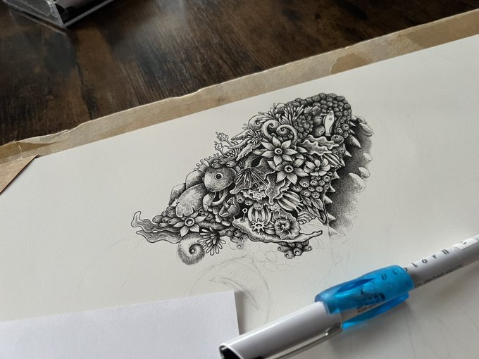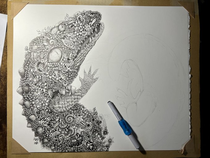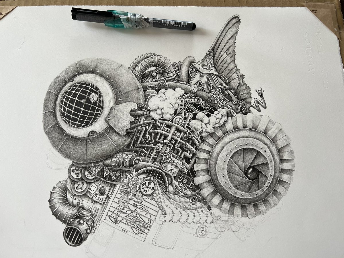 12 268 デカく描き過ぎた…かもしれぬ…が…まだ損じてない! #ペン画 23/03/16 19:55