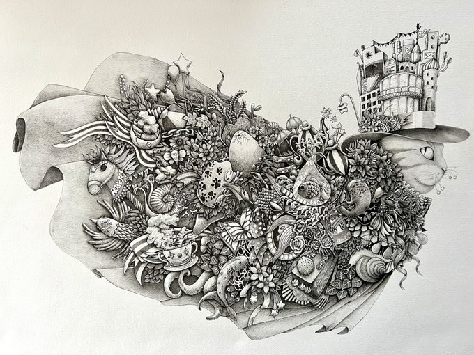 公募展の作品に取りかかるまで少しペースを落としてゆっくりと進めております。 #ペン画 #アクリルインク