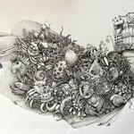 1 19 先週の始めから描いとるんですが、行き当たりばったりな線の練習です。 #ペン画 #アクリルインク 23/04/17 21:33