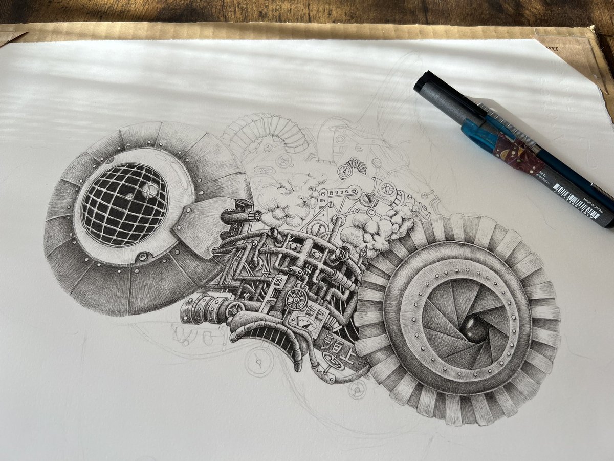 デカく描き過ぎた…かもしれぬ…が…まだ損じてない! #ペン画