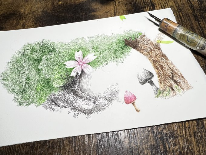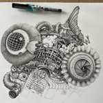 今日はここまで。 #ペン画