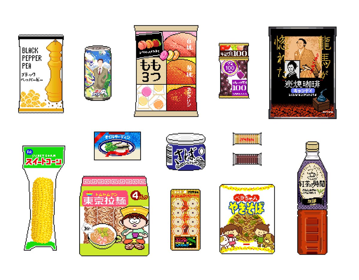 139 966 よつばがお祭りでもらったお菓子をかきました #ドット絵 #よつばと #pixelart 21/05/24 19:03