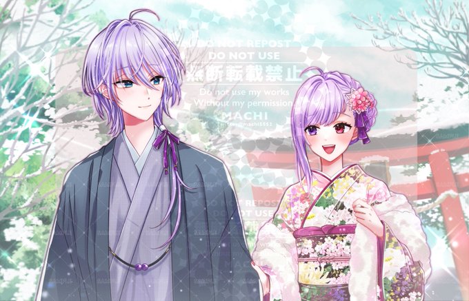 【 #Commission】 お知らせ遅くなりましたが 紫葉咲愛美さんのご依頼でお正月の初詣イラストを描かせて頂きました~!!⛩🎍🌅 私の絵柄でと言って頂き本当に嬉しくて泣きそうになりながら 美麗なデザインのお2人を愛でつつ作成させて頂き楽しかったです~💞 #紫葉絵 #悠々アトリエ
