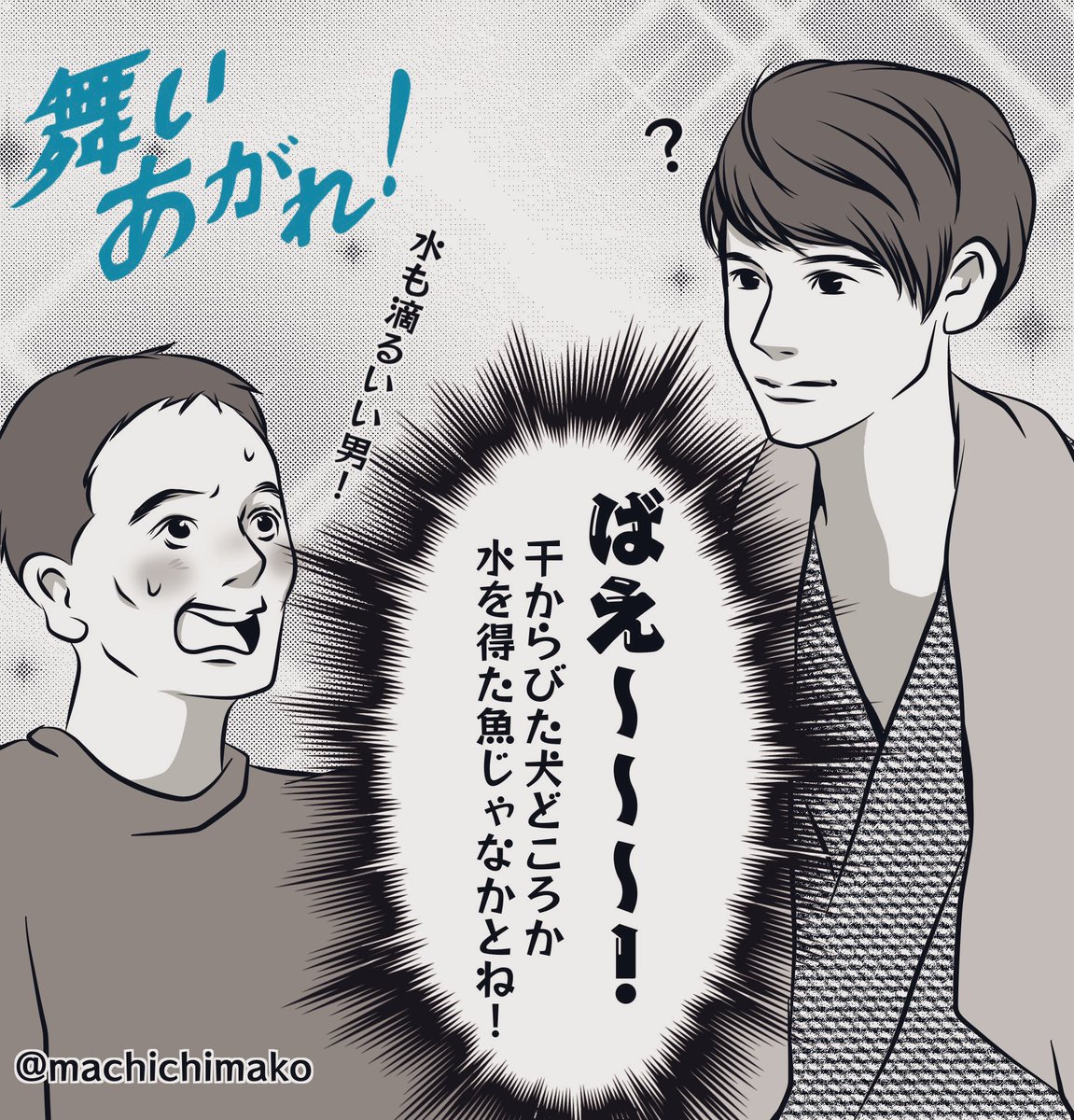 たかしとの初対面はお風呂に入ってたっぷり水気を含んだ浴衣姿、そりゃ一太もドギマギしちゃうよね(違 #舞いあがれ #舞いあがれ絵 #舞いあが絵