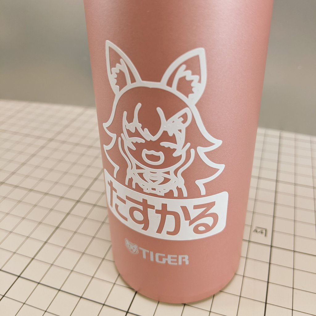 そして昨日のイラストをカッティングシート出力してタイガーさんの真空断熱ボトル(MMP-K030)にバーン!タイガーたすかりました! #みおーん絵