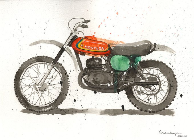 エンデューロやった事ないけど面白そう(描いてみた)✨ youtubeでよく見るけど洗車は大変だろうな😃 #enduro #exmachiya