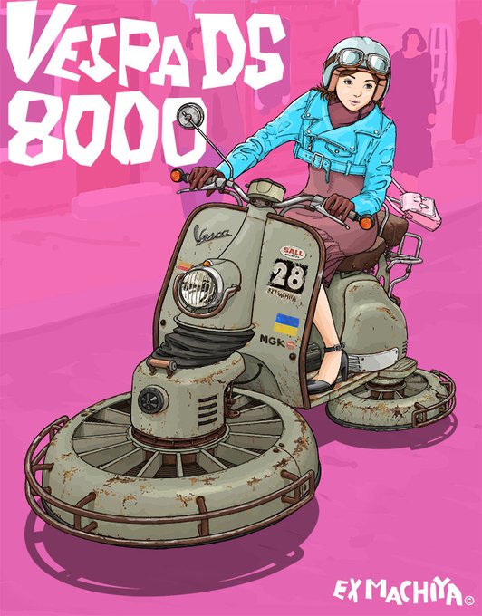 10 62 #今月描いた絵を晒そう ヴィンテージベスパと未来のヴィンテージベスパ 22/03/31 11:13