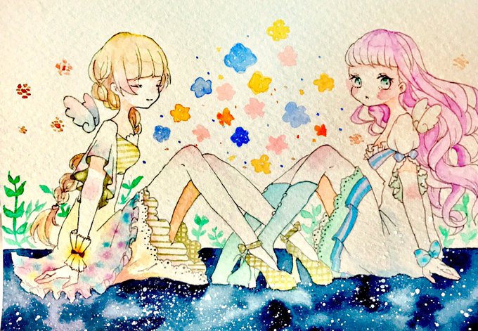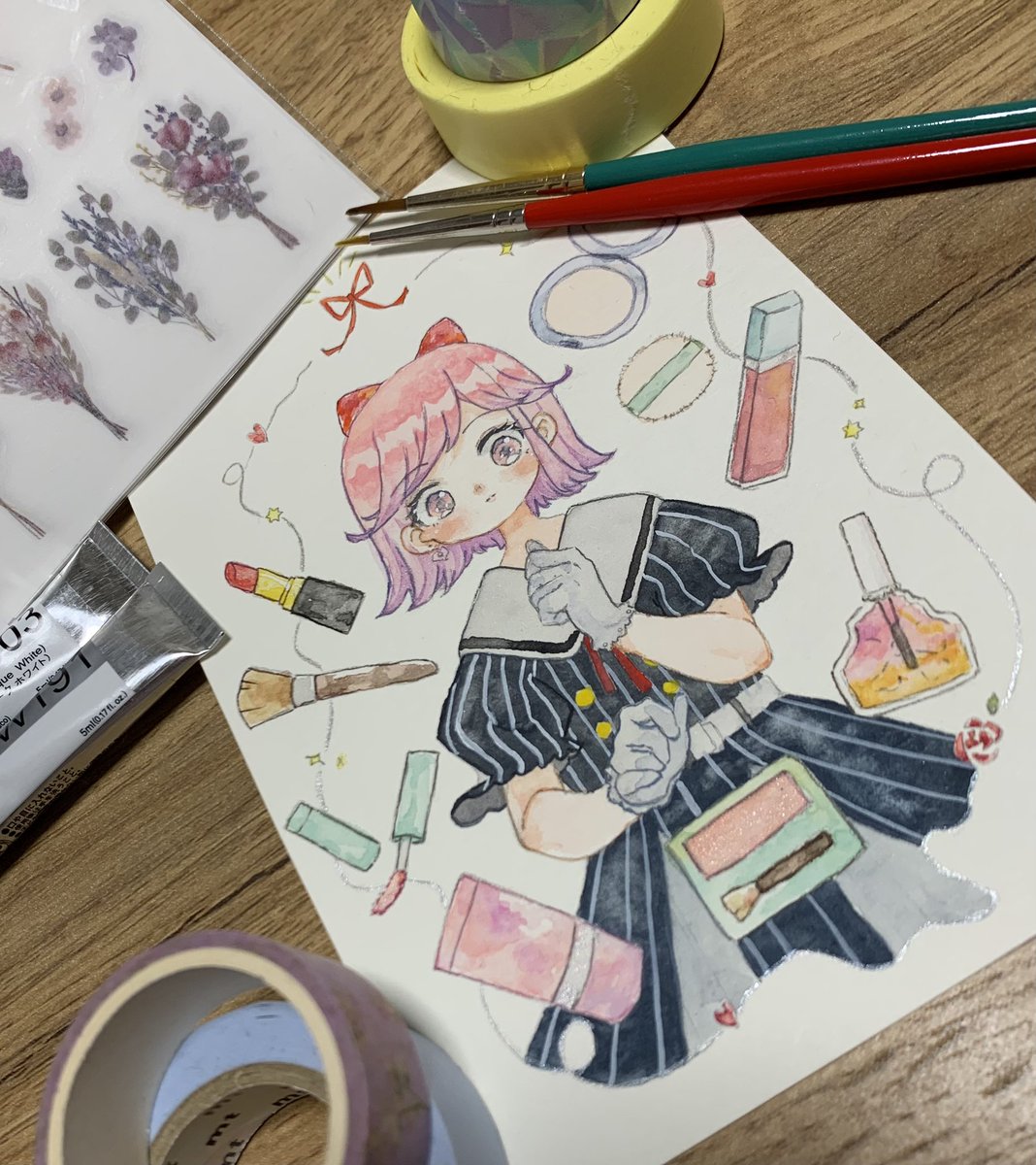 これはその昔自分の絵柄でリメイクタグで屑もちさんのイラストを描かせていただいた時の☺️🌸 ちょっと懐かしくなって失礼かなと思いつつ画像欄遡らせていただきました🙇♀️💦元がマステ絵ならではの華やかさでリメイクめっちゃ楽しかったです! twitter.com/218_2_c/status…
