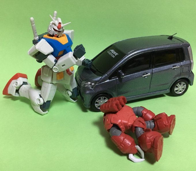 1 7 愛車にリコールのお知らせがきた〜😭 ガ「ガンダムが叩いて直しま〜す💖」 ま「…お願いします。やめて下さい…」 #ガンプラ #RX78-2 #コンバージ #ズゴック #ムーヴ 19/04/14 00:08
