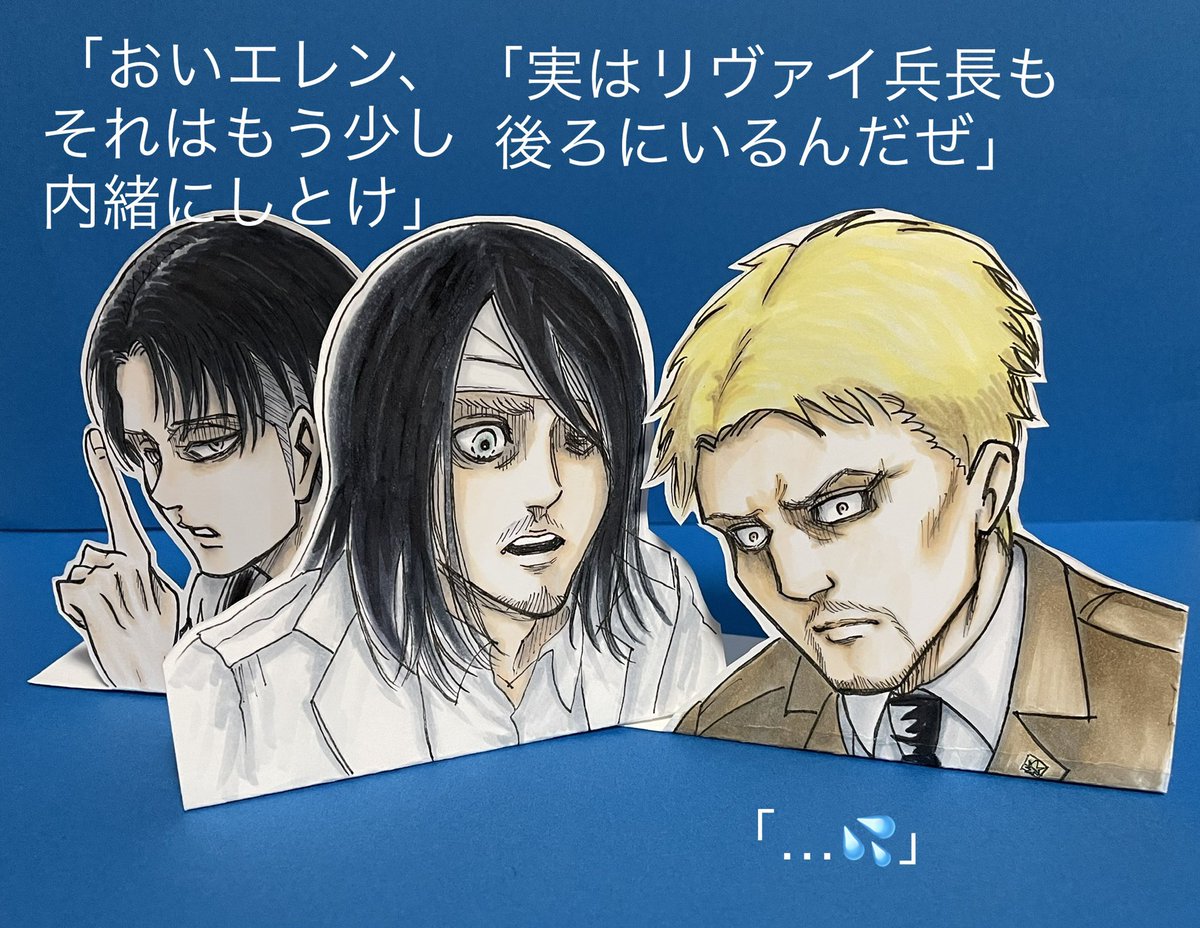 圧迫面接😂 ペーパースタンド使い道ないとか思ったけど結構遊べるwww 昔あった紙の着せ替え人形作ろかな🤣 #進撃の巨人 #エレンイェーガー #エレン #負傷兵エレン #ライナーブラウン #ライナー #ブラウン副長 #圧迫面接 #ペーパークラフト #ペーパースタンド