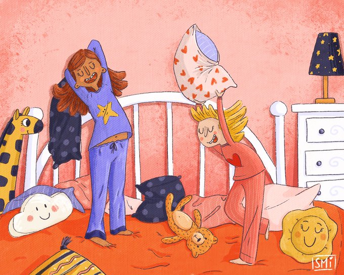 Sleepovers, pillow fights and besties...am i right?! My latest illustration. #kidlitart #illustration #Sleepover