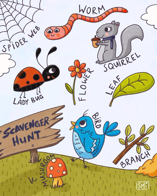 Anyone up for a scavenger hunt? Cute little illustration by me inspired by walks with my boys. #kidlitart #illustration