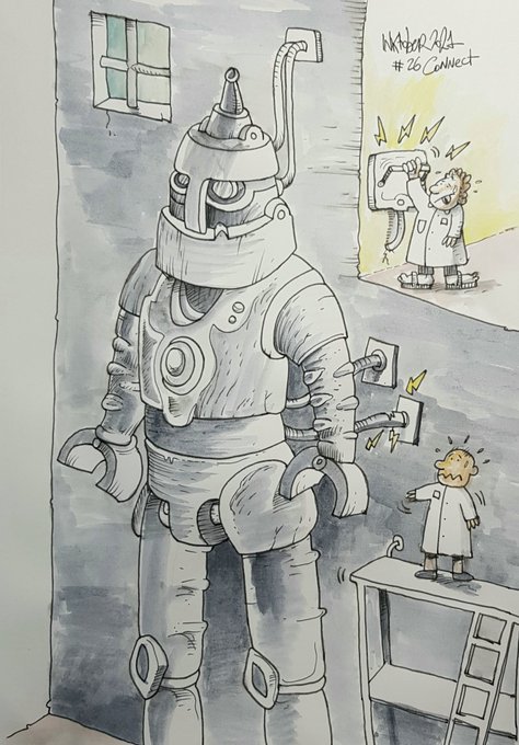 Chegamos conetados ao día/debuxo 26 do #inktober #inktober2021 #inktober2021connect #inktober2021connectday26