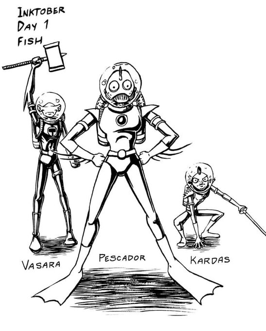 So here we go, the start of #inktober2020 with the first prompt of #fish and I hope you all enjoy my take on it with these three Vasara, Pescador and Kardas. #inktober #scottmacniven @DarknWhimsical @inktober @jakeparker