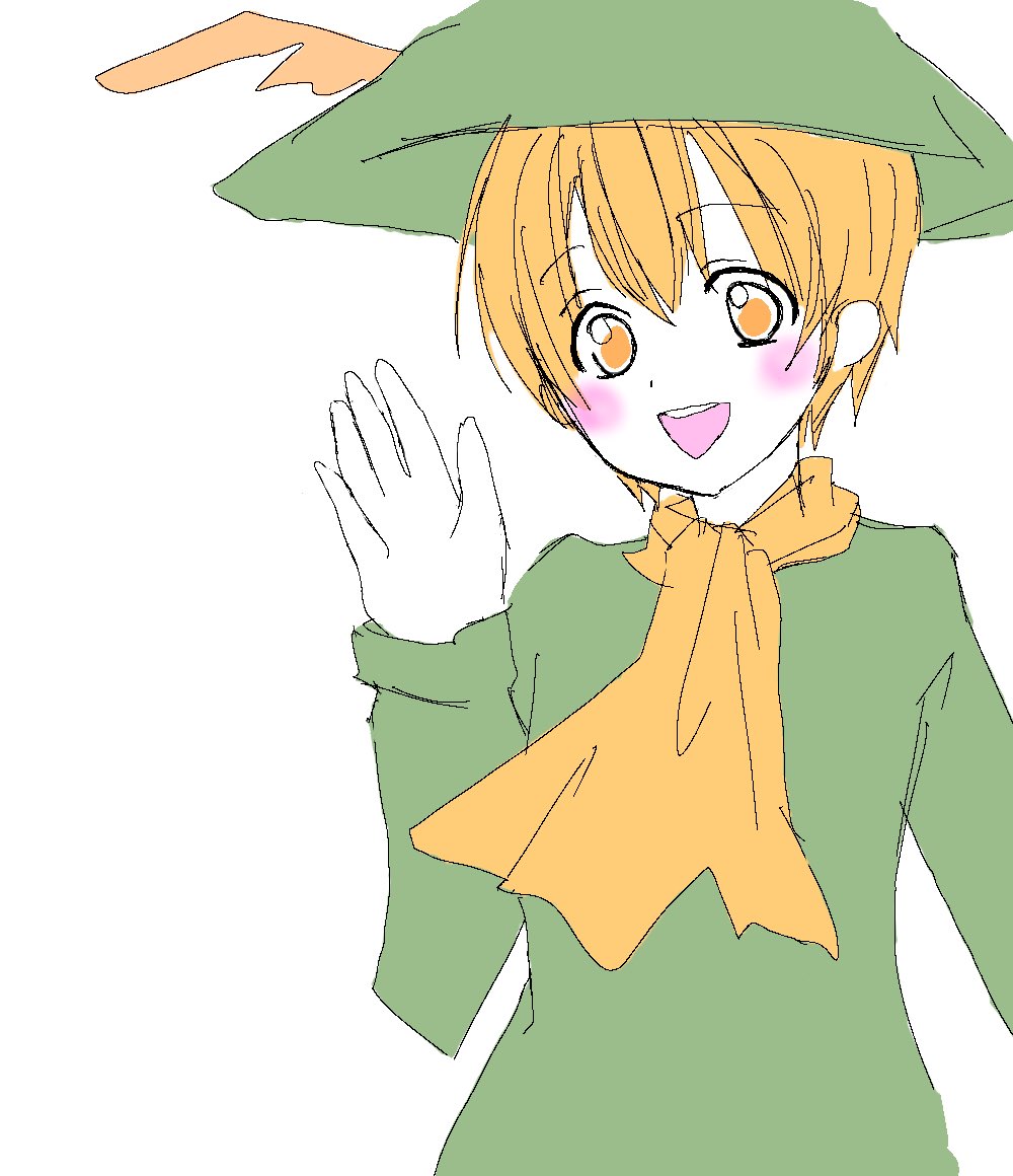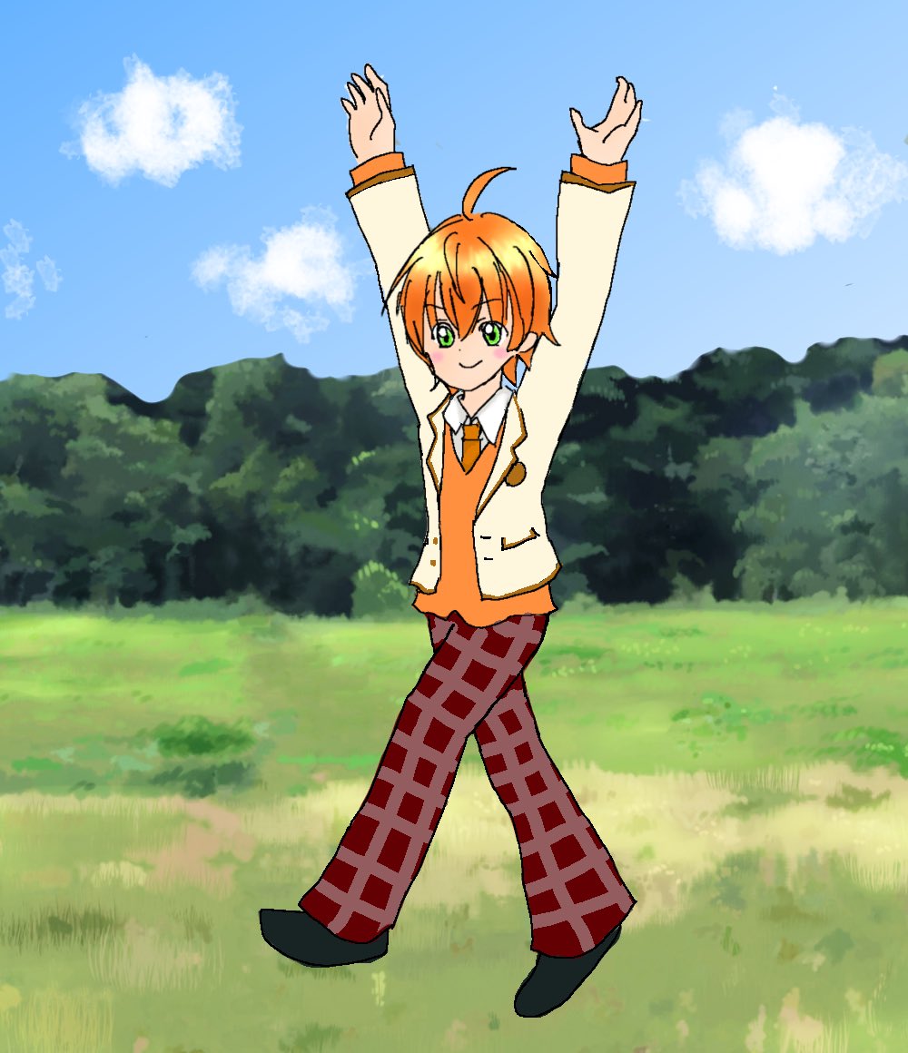 昨日の配信のリハ動画のコマ送り 手を上げてる瞬間が可愛いくて描いてみた🧡 背景に困って草原にしてみたら、はしゃいでる感じになった笑笑 #ジェルぎゃらりー