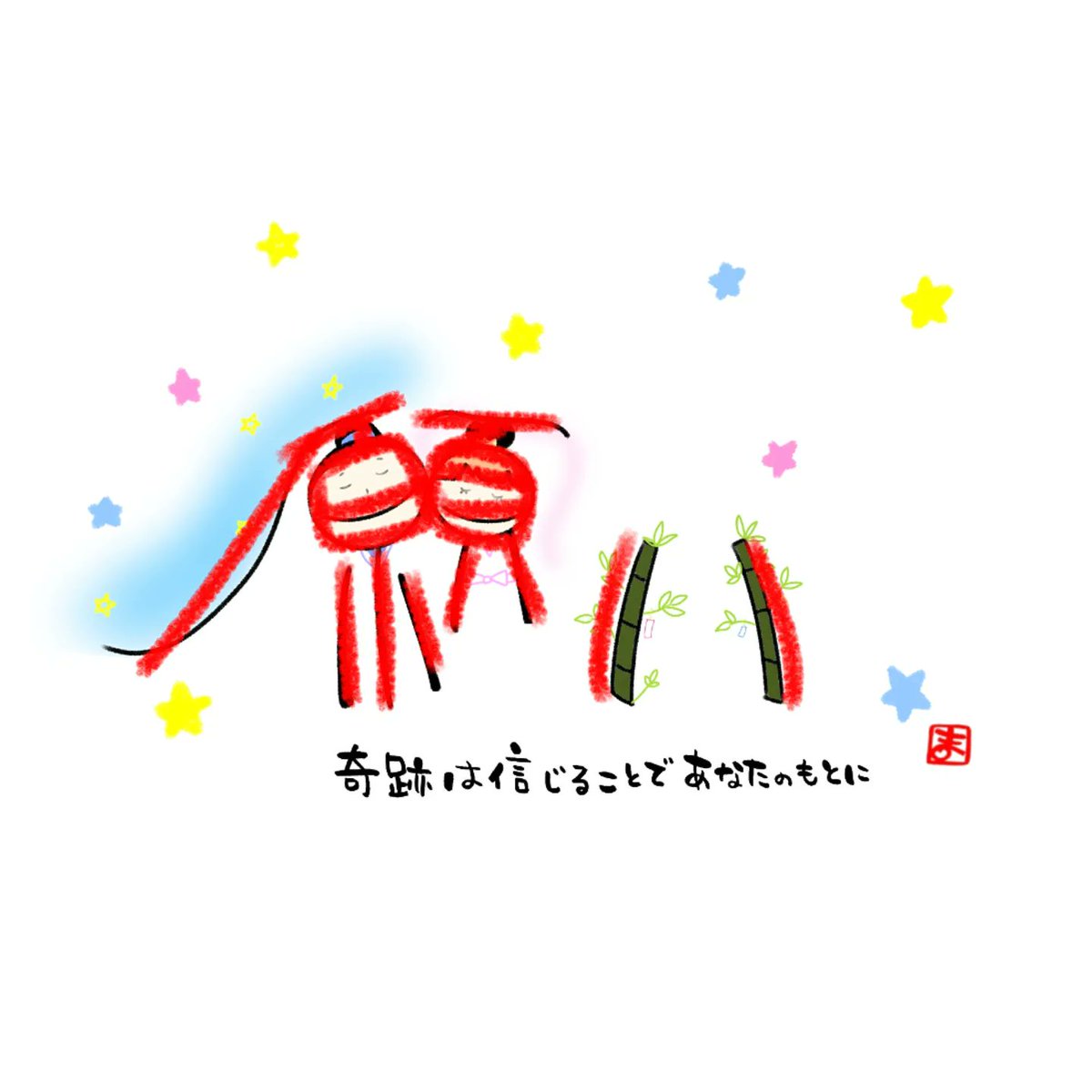 今日は七夕ですね。 感じ文字は「願い」です。 彦星と織姫をイメージして描きました。 みなさまは 何をお願いされましたか? 願いは叶う❗ と、 信じるからこそ奇跡は起きます。 自分のことを信じ続けること。 必ず願いは叶います⭐ 今日も笑顔でいきましょう✨ #感じ文字 #七夕 #イラスト